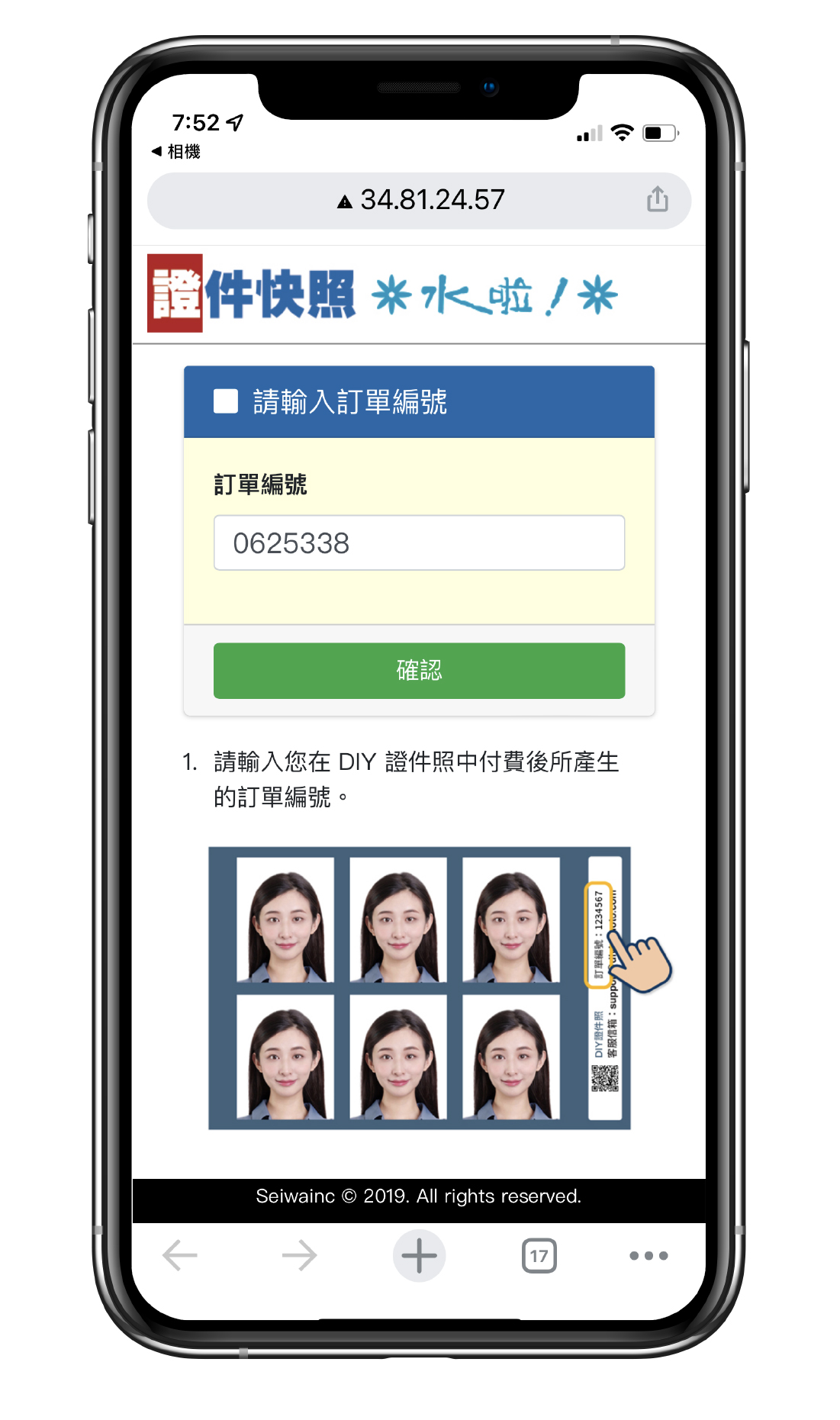 | 3.手機輸入訂單編號,點擊 「確認」送出。 |